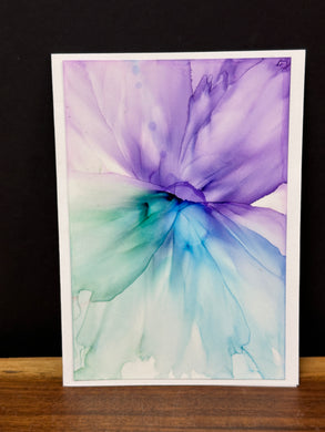 Hand-painted Greeting Card - Purple Alcohol Ink Flower