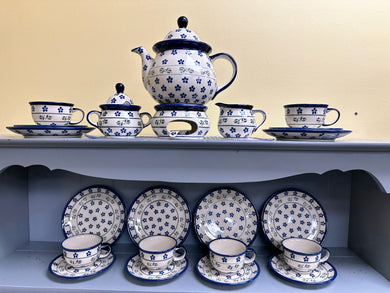 Tea Set for 6, Traditional White w/Cobalt Flowers & Vines