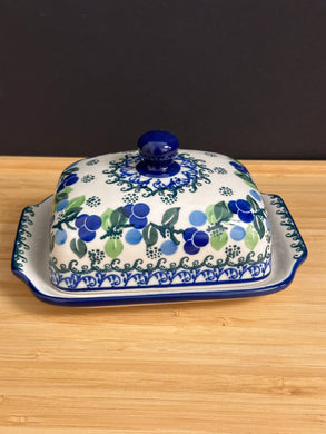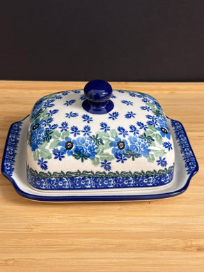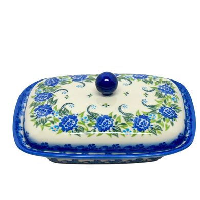 Butter Dish, Euro Wide - Galia Blue Chrysanthemum
