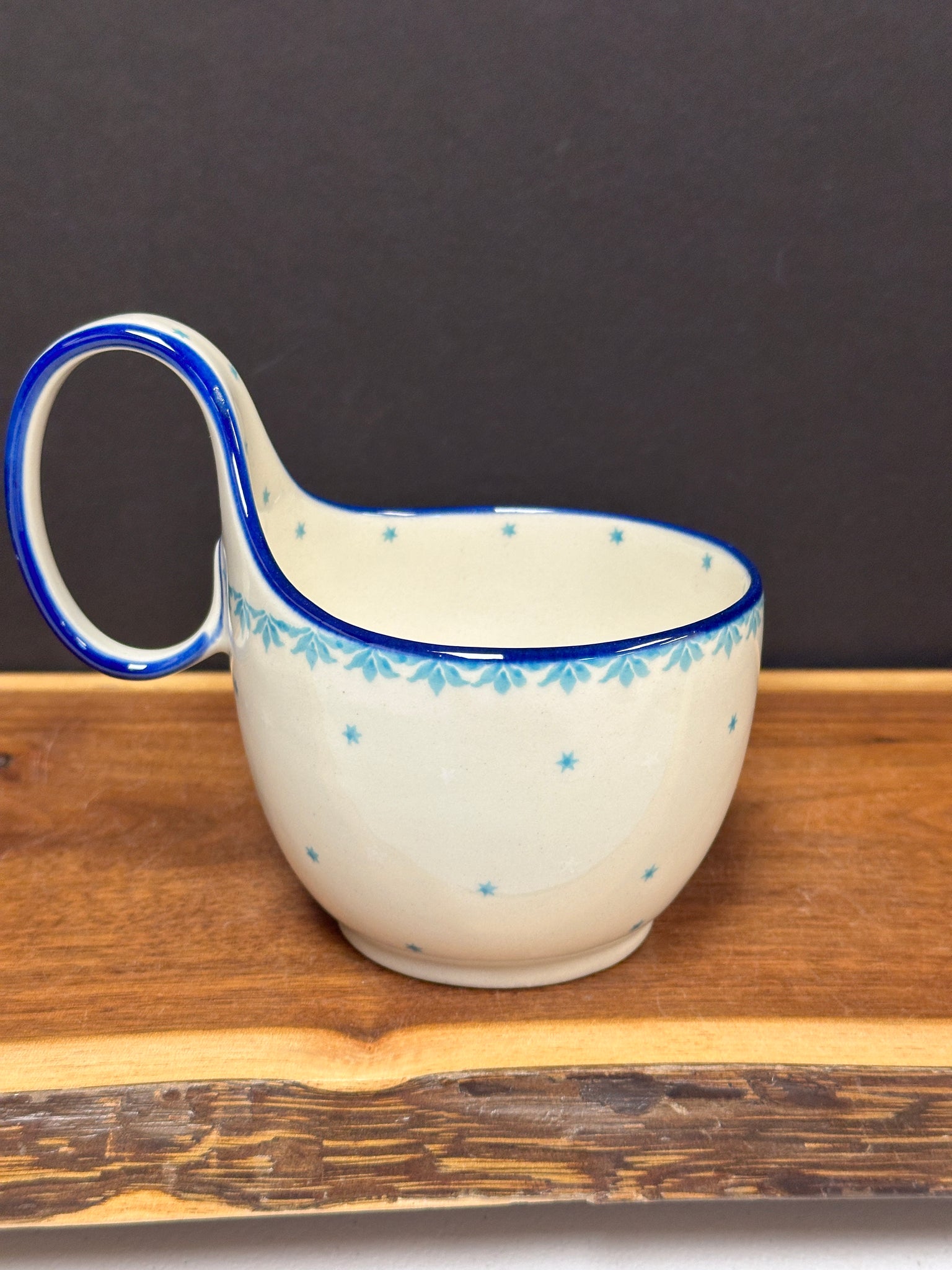 Often called a Soup Mug or a War Mug.  This loop handled bowl is perfect for soup, chili, or a large ice cream sundae. Holds approximately 16 oz.