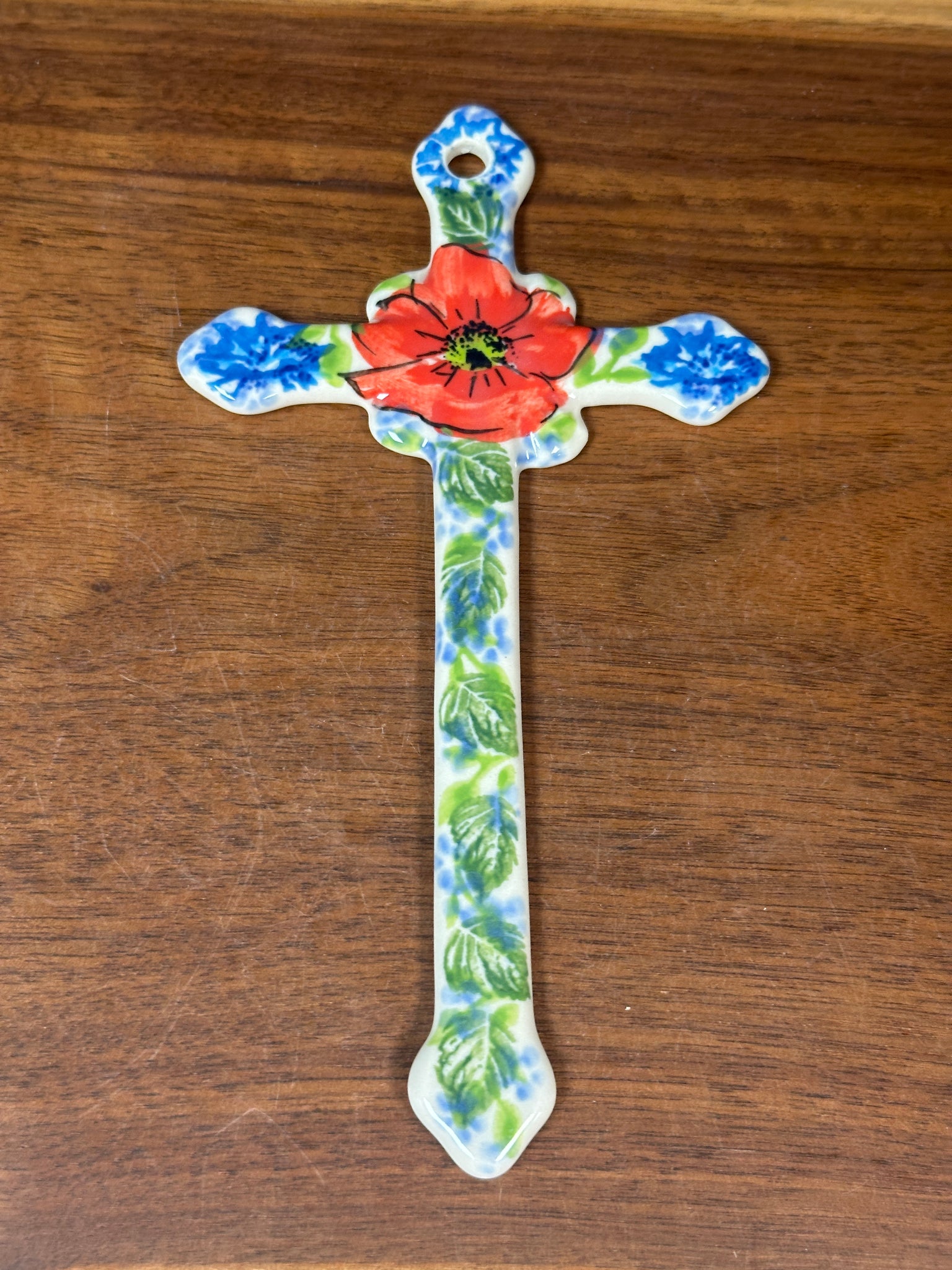 Beautiful and delicately designed by Kalich. These hand-painted crosses are gorgeous as a stand-alone piece or in an arrangement of crosses. Hole for wall hanging. So pretty for Easter and year-round.