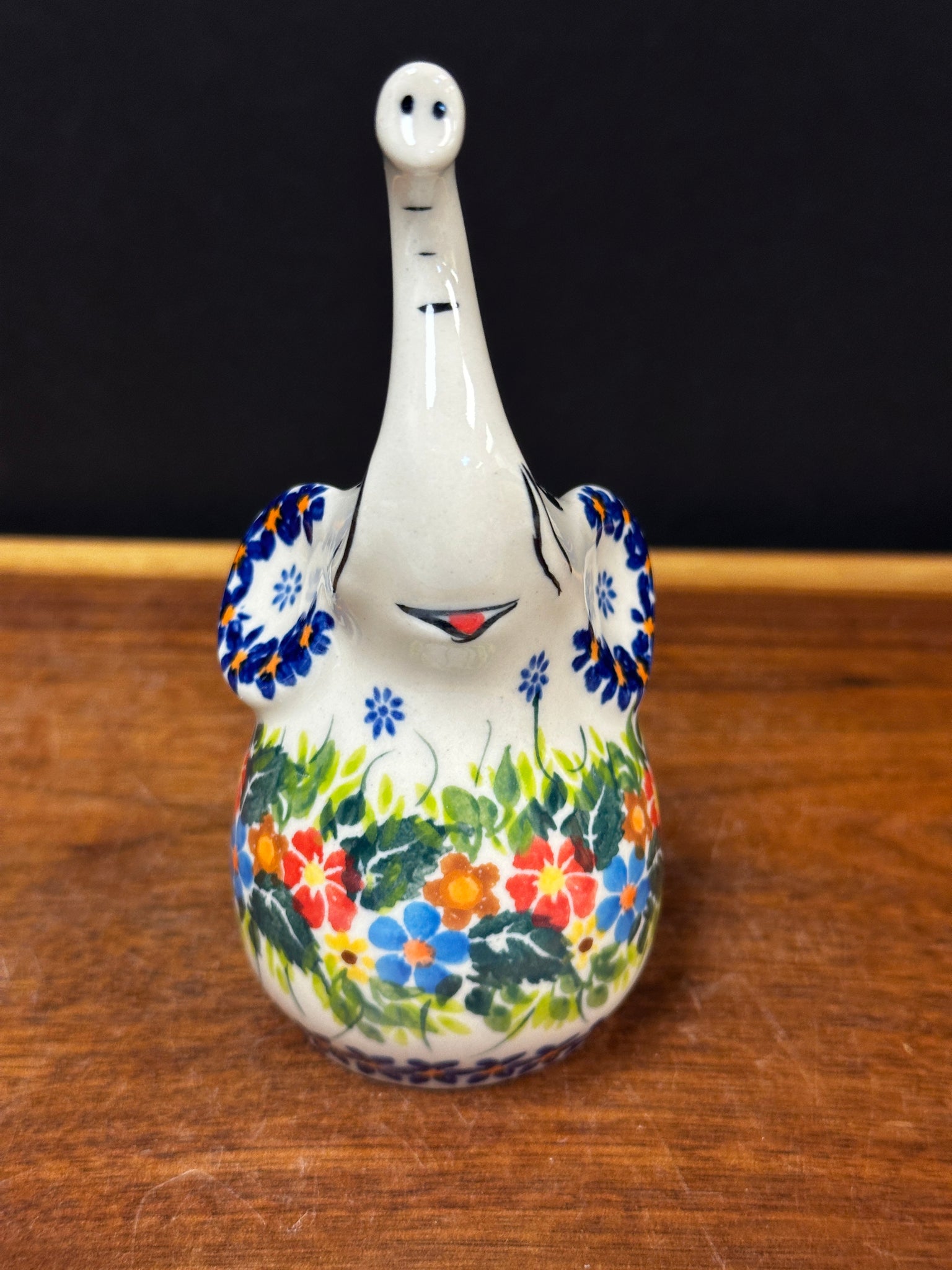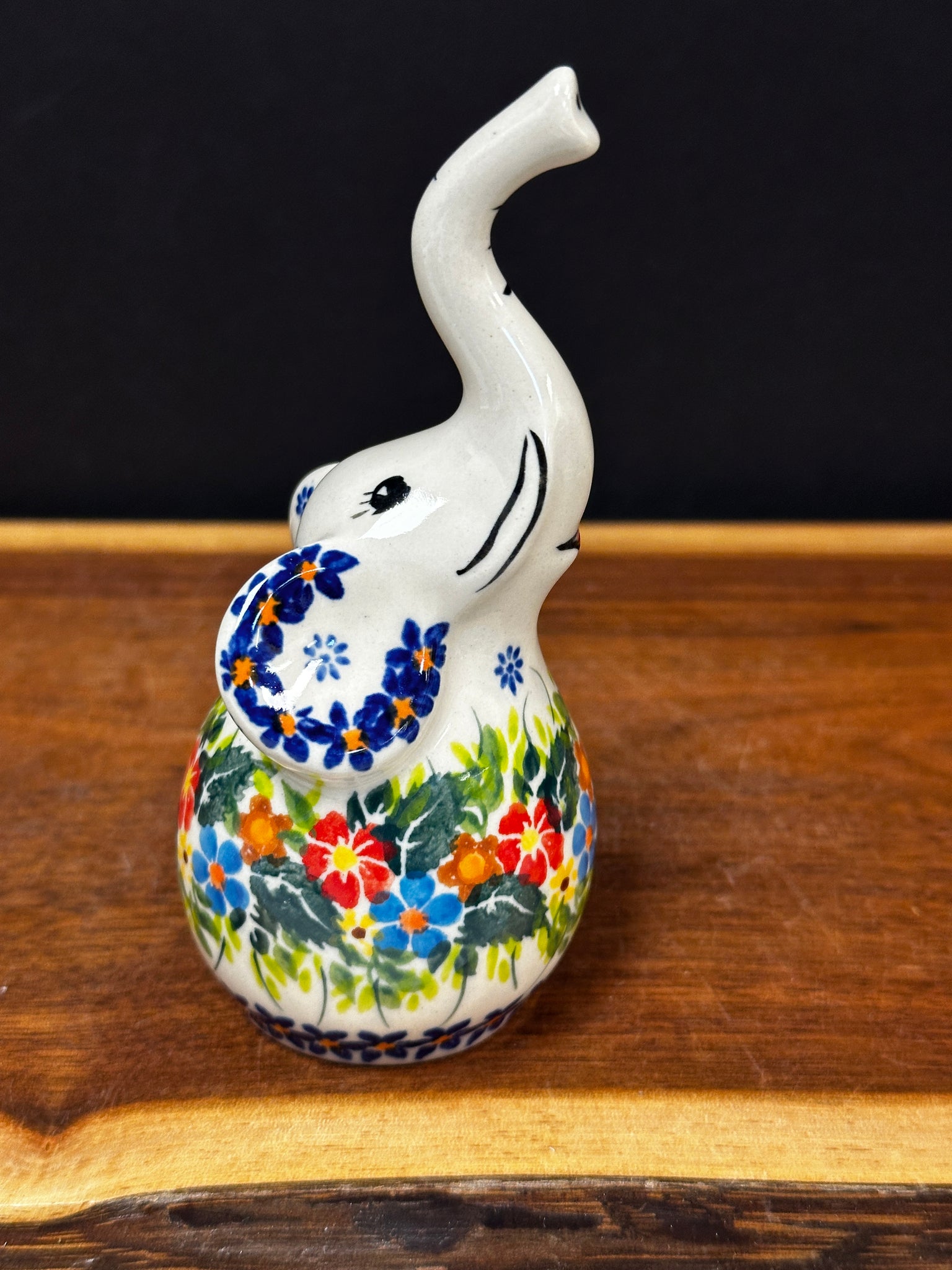 Adorable elephant holds rings on its trunk. Cute as a figurine too.