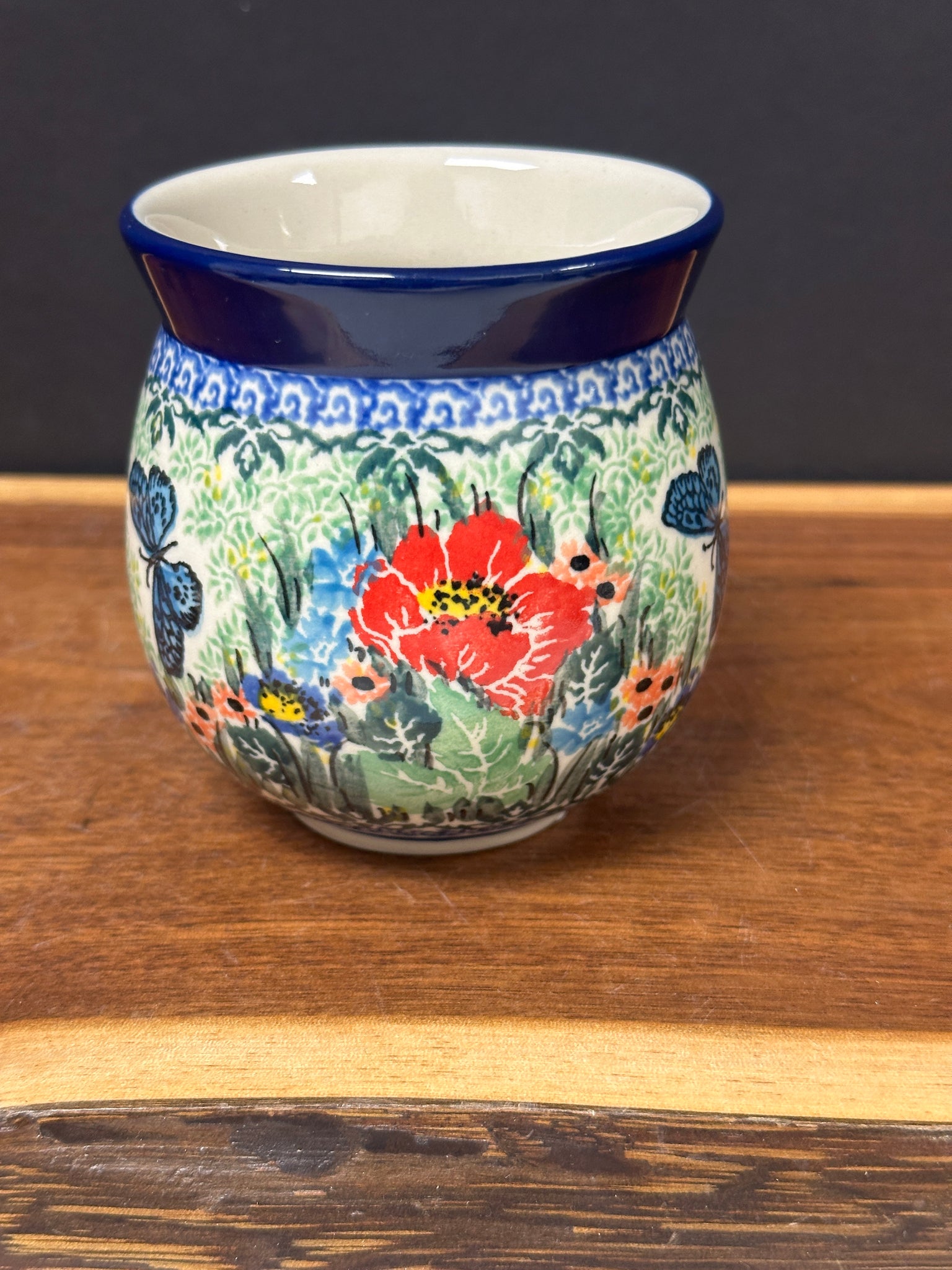 One of our favorite shaped mugs offers a traditional design popular amongst Polish Pottery collectors and coffee enthusiasts.