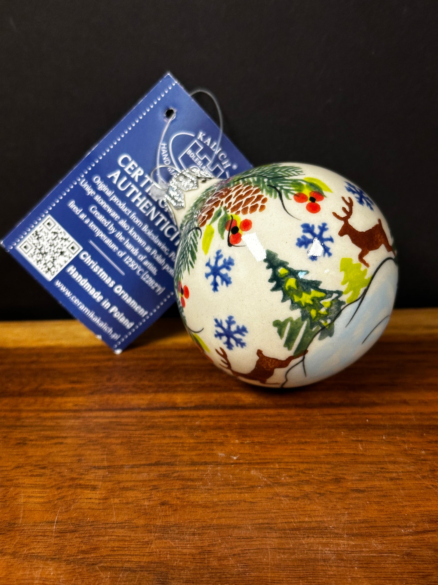 Round ball shaped ornament 2.5" diameter. Ornament Stand sold separately.