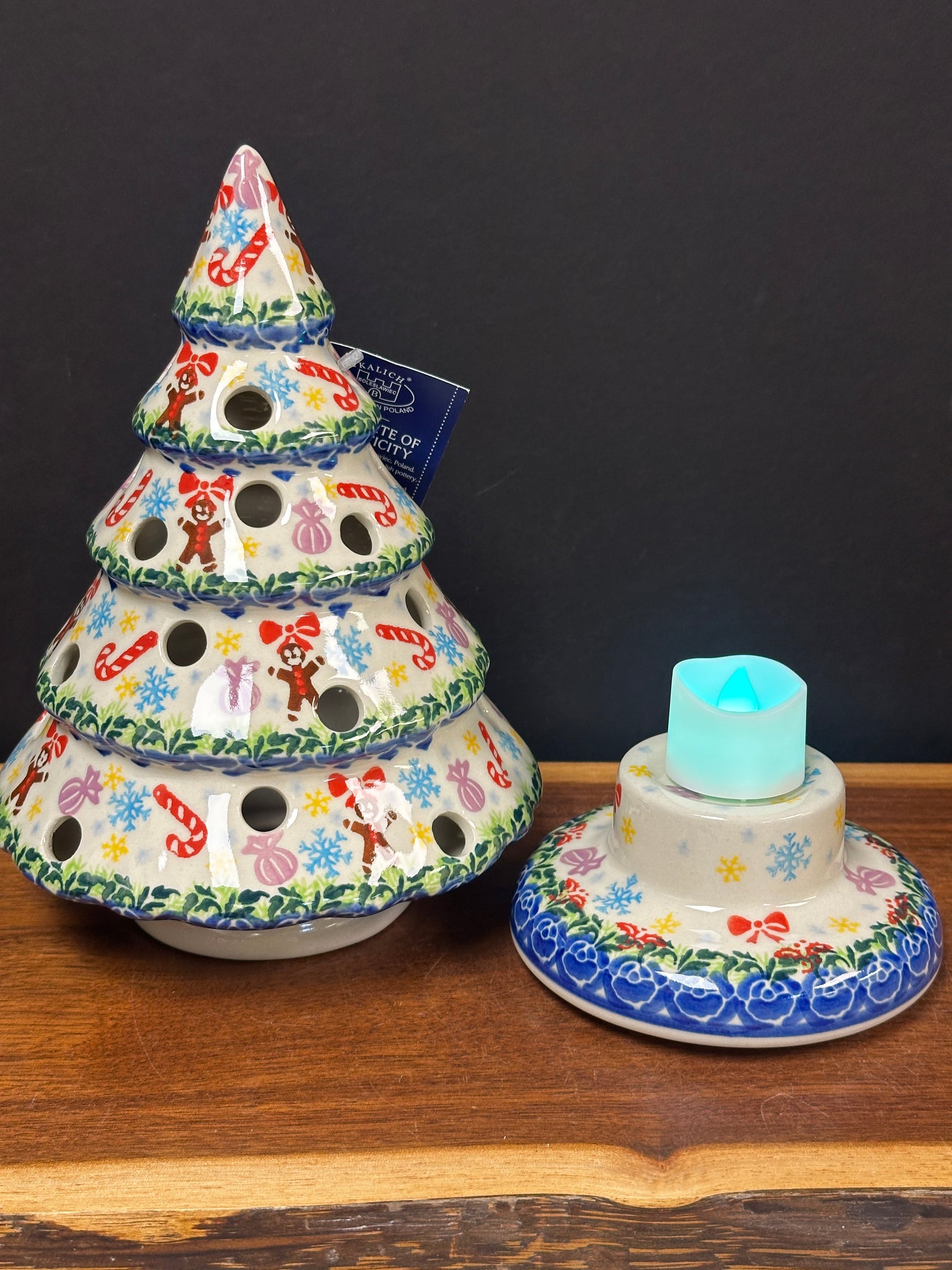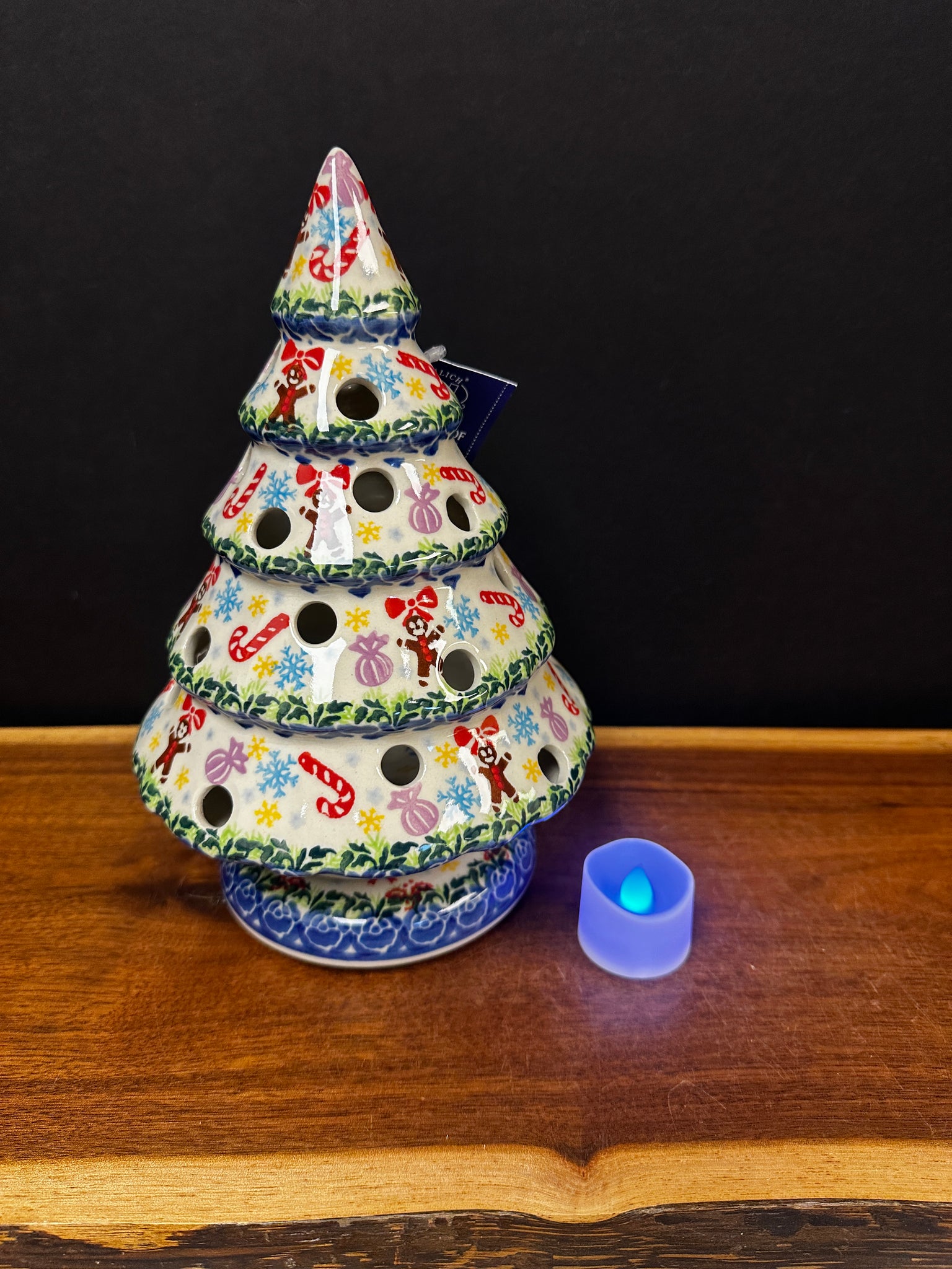 Luminary tree measures approximately 9.5" tall and 6.5" wide