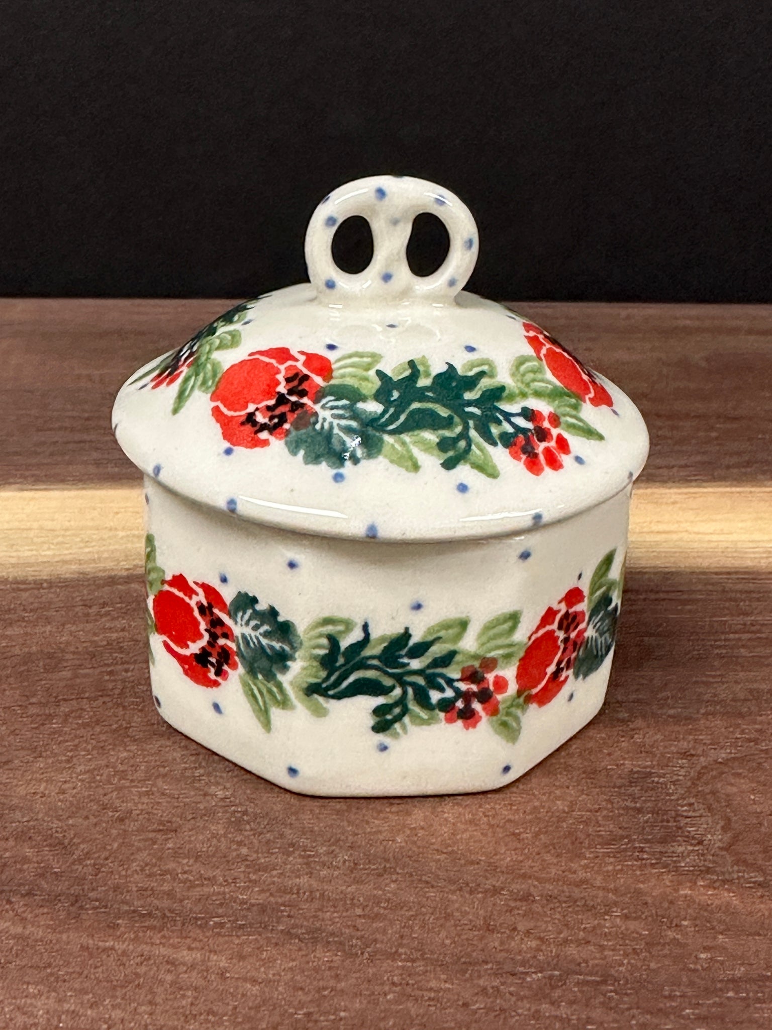 Miniature version of our large pretzel box. Perfect little box for a small seasoning box with lid. Lid has tiny pretzel shaped handle. Super cute with your charcuterie set for spicy mustard or seasoning salts. Also works well for a special piece of jewelry or gift box for someone special.
