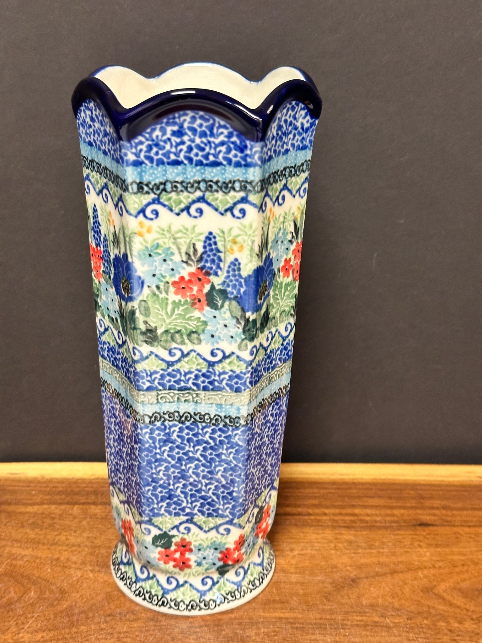 9.25” tall and 3.75” wide at the top
